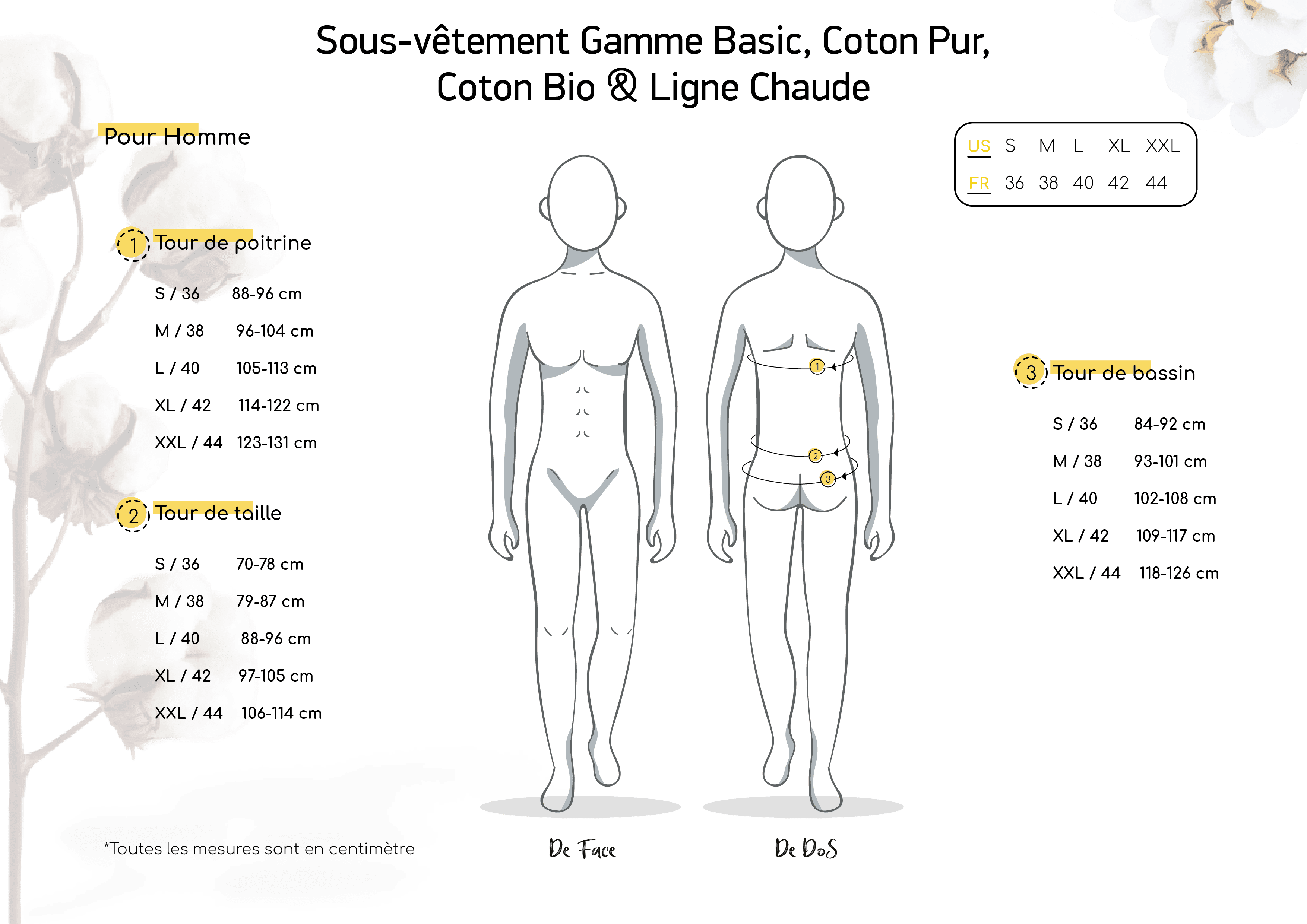 Nous étiquetons nos produits suivant les standard et cahiers de charges européens. Nous pensons que vous ne rencontrerez aucune difficulté en essayant de trouver la taille qui vous convient. Toutefois, nous avons conçu ce guide pour vous fournir plus d'informations et vous aider à choisir le prochain article Kontakt qui garnira votre garde-robe.