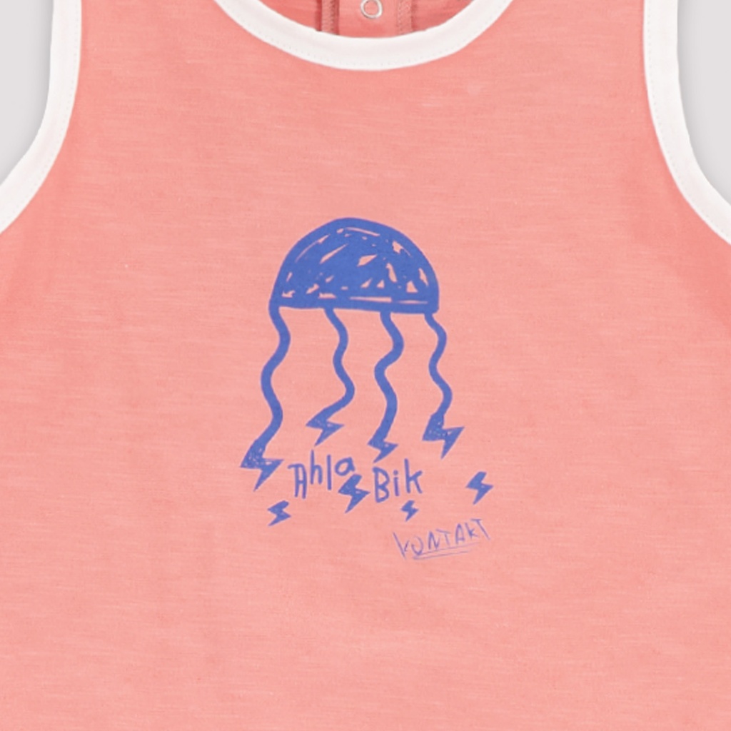 Ce débardeur bébé garçon mélange rose clair et blanc, fabriqué en jersey flammé pour un toucher unique et une respirabilité accrue lors des chaudes journées d'été.